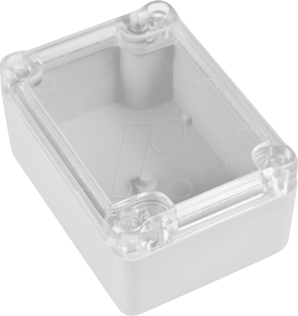 Industriegehäuse aus ABSFarbe Oberteil glasklar, Unterteil lichtgrauSchutzart IP65 Dichtung lose beigelegtIK Klassifizierung IK09Lieferumfang Ober-und Unterteil, Dichtung, 4 Deckelschrauben