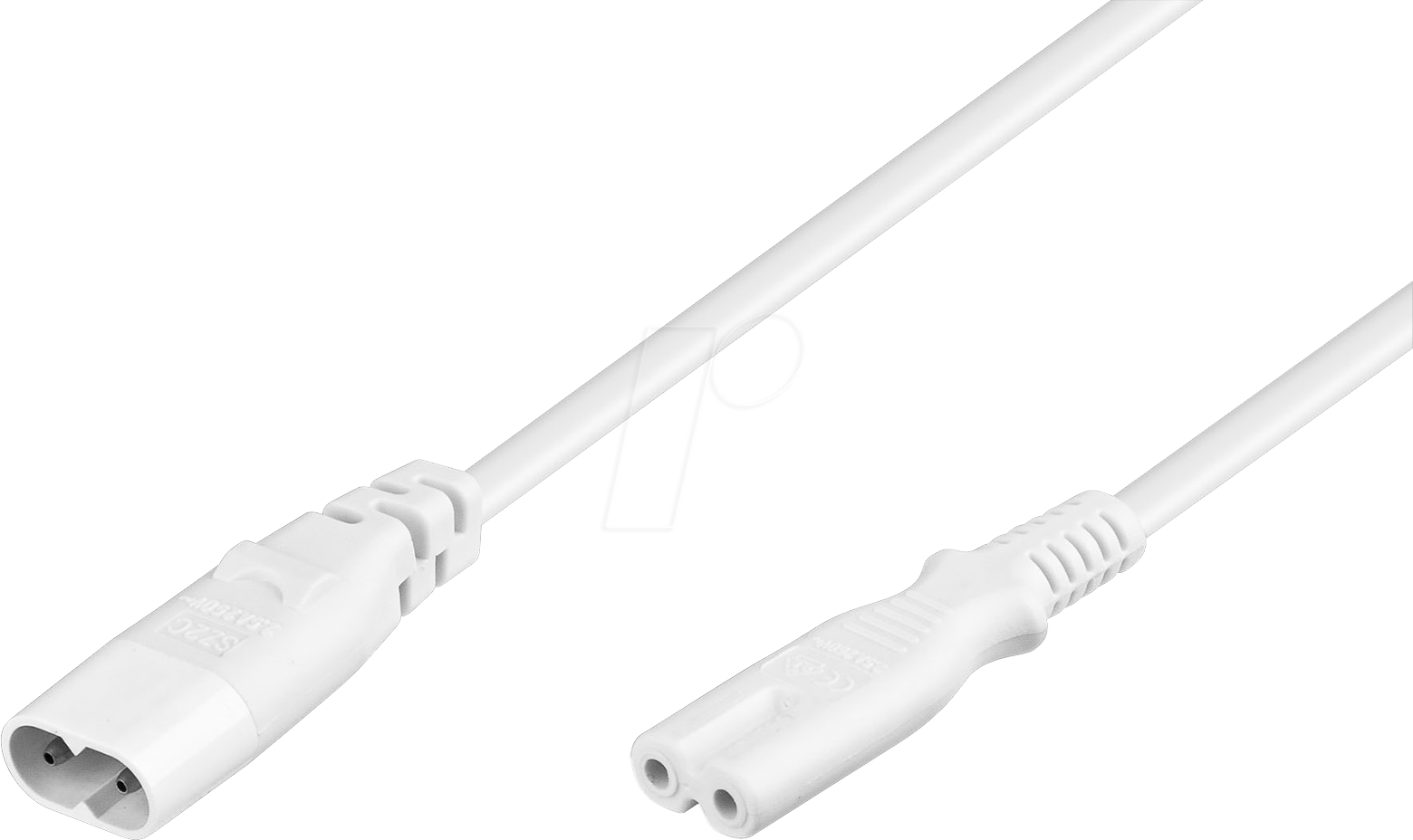 Netzkabel 2,0 MeterGeräteverlängerung IEC 60320 C7>C8• H03VVH2-F2X 0,75 mm²• Stecker IEC-60320-C8• Buchse IEC-60320-C7• Farbe:weiss