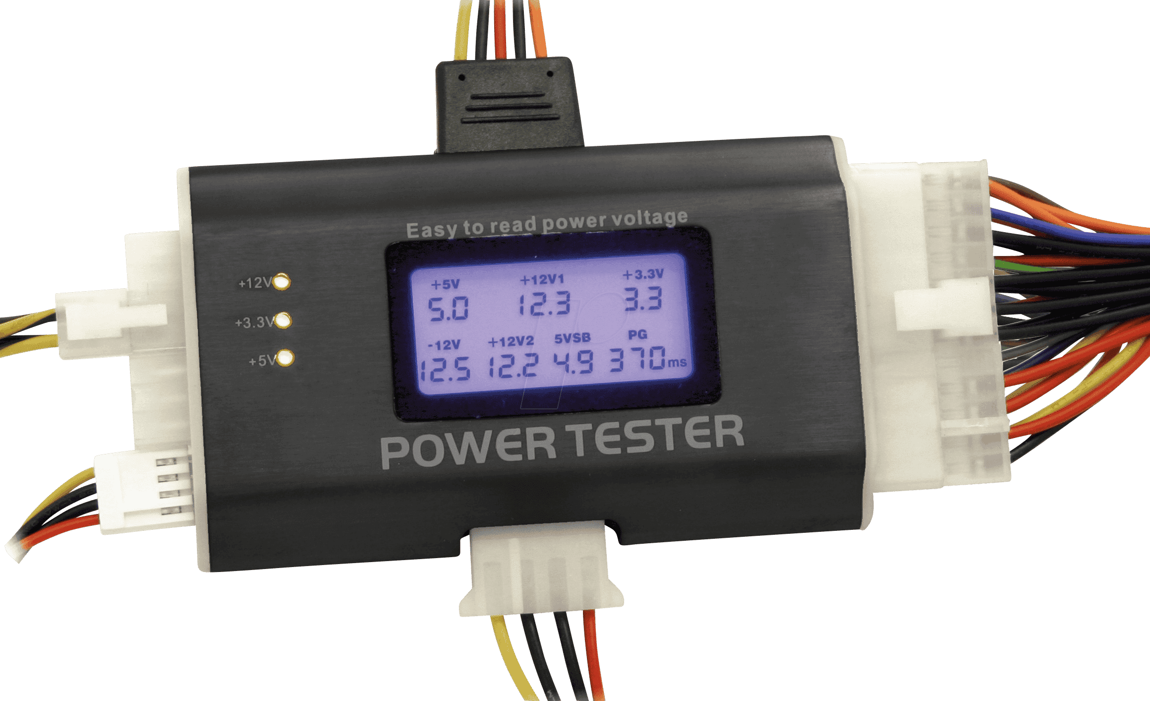 - Schnelle und einfache Überprüfung: Überprüfen Sie die Spannungswerte Ihres Netzteils in Sekundenschnelle.