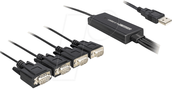 - Anschlüsse: 1 x USB 2.0 Typ A Stecker, 4 x RS-232 DB9 Stecker