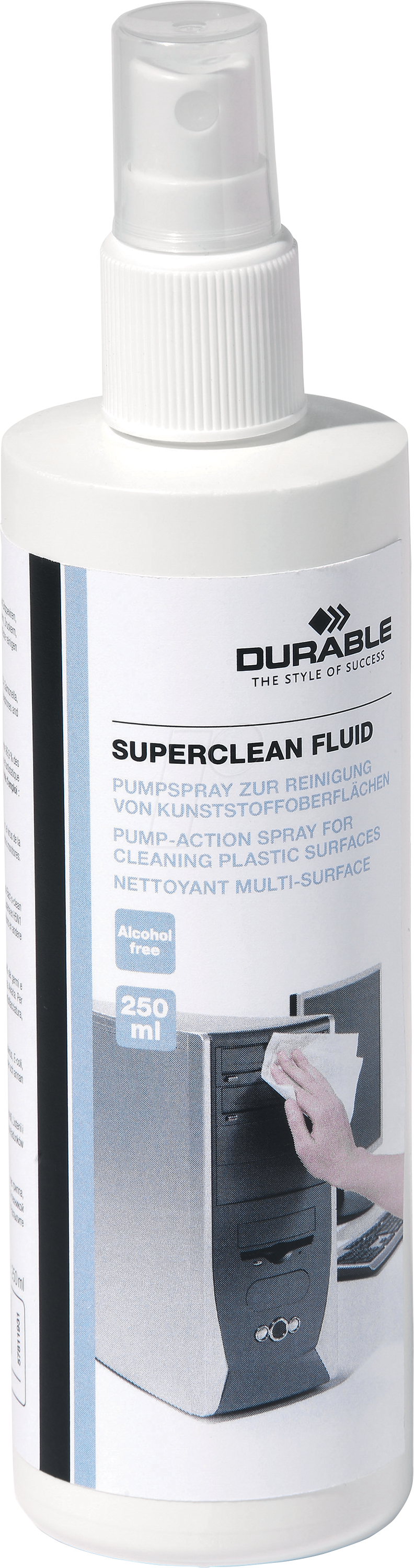 - Das DURABLE 578119 Reinigungsspray ist so formuliert, dass es effektiv reinigt, aber dennoch schonend zu den Oberflächen ist. Es enthält keine stark aggressiven Chemikalien. Beachten Sie dennoch die Sicherheitshinweise auf der Verpackung.