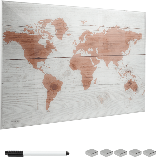 Die NAVARIS Magnetwand vereint modernes Design mit praktischer Funktionalität. Die hochwertige Glasoberfläche in Kombination mit dem detailreichen Weltkarten-Motiv macht sie zu einem echten Hingucker in jedem Raum – egal ob im Büro, im Wohnzimmer, in der Küche oder im Flur. Lass dich von den Kontinenten und Ozeanen inspirieren und plane deine nächste Reise, halte Erinnerungen an vergangene Abenteuer fest oder organisiere deine Aufgaben stilvoll.