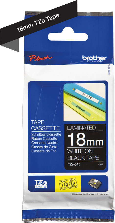 Das P-TOUCH TZE345 Schriftband ist mit allen Brother P-touch Beschriftungsgeräten kompatibel, die TZe-Schriftbänder unterstützen. Bitte überprüfen Sie die Kompatibilitätsliste in der Bedienungsanleitung Ihres Geräts.