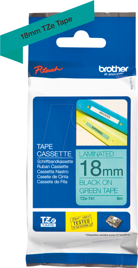 Das TZE741 Schriftband ist mit einer Vielzahl von P-Touch Geräten kompatibel, die 18mm Schriftbänder unterstützen. Eine vollständige Kompatibilitätsliste finden Sie auf der Webseite des Herstellers. - Ist das Schriftband wasserfest?