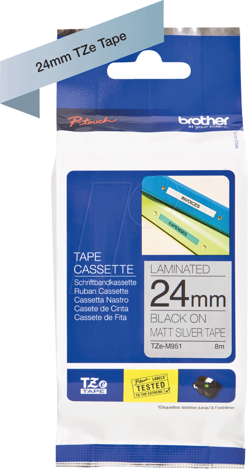 Das P-TOUCH TZEM951 ist mit allen P-TOUCH Beschriftungsgeräten kompatibel, die 24 mm Schriftbänder unterstützen. Bitte überprüfen Sie die Kompatibilitätsliste Ihres Gerätes.